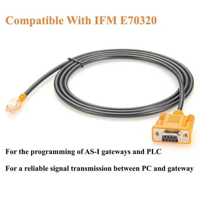Compatible IFM E70320DB9 RS232 to RJ12 Programming Cable Fully Compatible With IFM E70320 Cable Designed for the Programming of AS-i gateways and PLC, Ensures reliable signal transmission between PC and gateway. ^^ High-QualityConstructed with Premium PVC Jacket and aluminum foil shielding effectively resist EMI/RFI interference and ensure reliable signal transmission. ^^ Plug & Play Easy to Use, Plug and Play, No Additional Drivers Required. ideal for Programming, Configuration, and Diagnostic Tasks. ^^ Custom CableWe are a professional cable manufacturer, please contact us for customised requirements. Please contact us if the cable you received is defective or does not work.