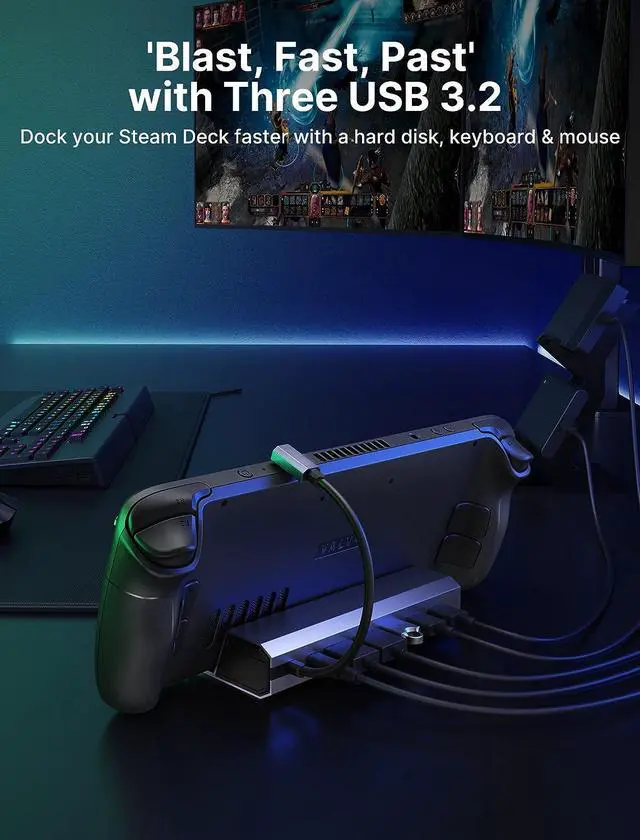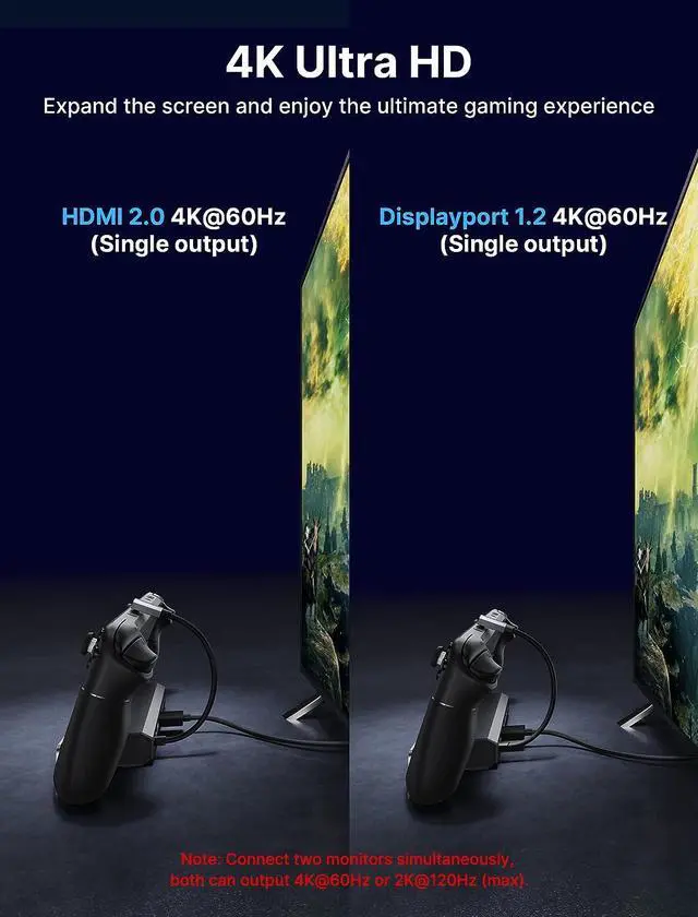 4K@60Hz HDMI OutputThe Steam Deck Dock comes with a 4K@60Hz HDMI 2.0 output. When you connect an external 4K monitor, it can provide you sharper and smoother visual experience, so you can enjoy the visual feast on your games.