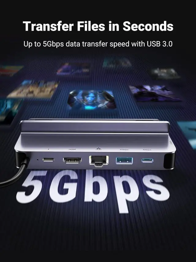 Multi USB A & C Extended: UGREEN Steam Deck Dock has 2x USB 3.0 and 1x USB C ports, It is convenient to connect external mouses, keyboards, game controllers to make strategy games easier. The data transmission speed is up to 5Gbps, it is great to expanded USB storage options like U disks and hard disks.