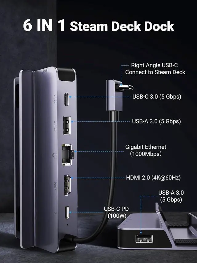 Steam Deck Dock: UGREEN Steam Deck Dock features 4K@60Hz HDMI output, Gigabit Ethernet port, 2 USB 3.0 and 1 USB C ports, 100W PD charging port, expand more possibilities for your Steam Deck, ROG Ally or other device.