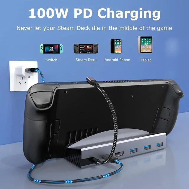 Enough: ] Docking Station for Steam Deck 6-in-1, Fancy Buying steam deck dock convert your stream deck usb type c port into 6 ports: HDMI(4K@60Hz), Gigabit Ethernet (1000Mbps), 3*USB 3.0 ports (5Gbps), USB C PD charging (100W). This steam dock provides everything you need to charge your steamdeck, connect to peripherals, and stream to a larger screen. Please make sure the thickness of the protective case is less than 2mm.