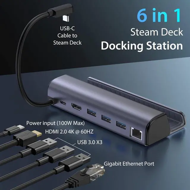 Multi-Port Available: The 6-in-1 Docking Station equipped with HDMI 4K@60Hz output, an Gigabit Ethernet input, three USB-A 3.0 ports and a USB-C port for charging, letting you explore a new way to play with Steam Deck. One year warranty and lifetime customer service, please contact us via Amazon message system for any questions.
