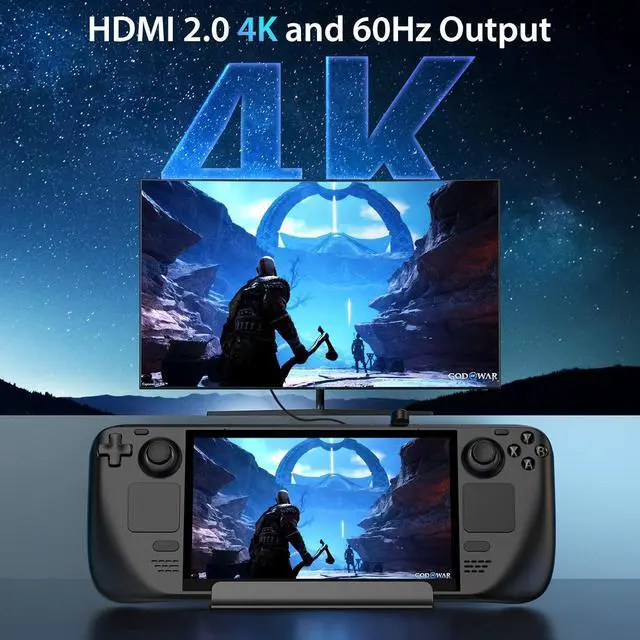 [4K@60Hz HDMI Output]: The Steam Deck Dock comes with a 4K@60Hz HDMI 2.0 output. When you connect an external 4K monitor, it can provide you sharper and smoother visual experience, so you can enjoy the visual feast on your games.