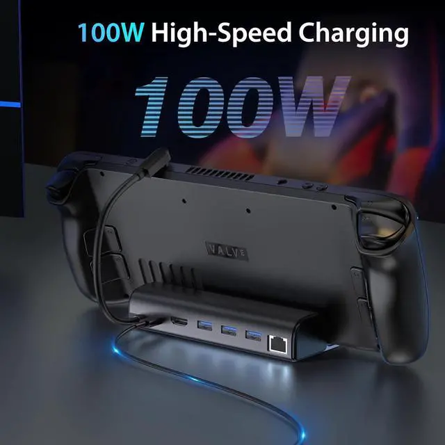 [Charge While Playing]: Our Dock allows the Steam Deck system to be charging with 100W Max power delivery while in TV or tabletop mode. Built in smart original chip, having Short-circuit Protection, Over Power Protection, Recovery Protection and Overheating Protection. It allows you to play with Steam Deck for an extended amount of time in your favorite games.