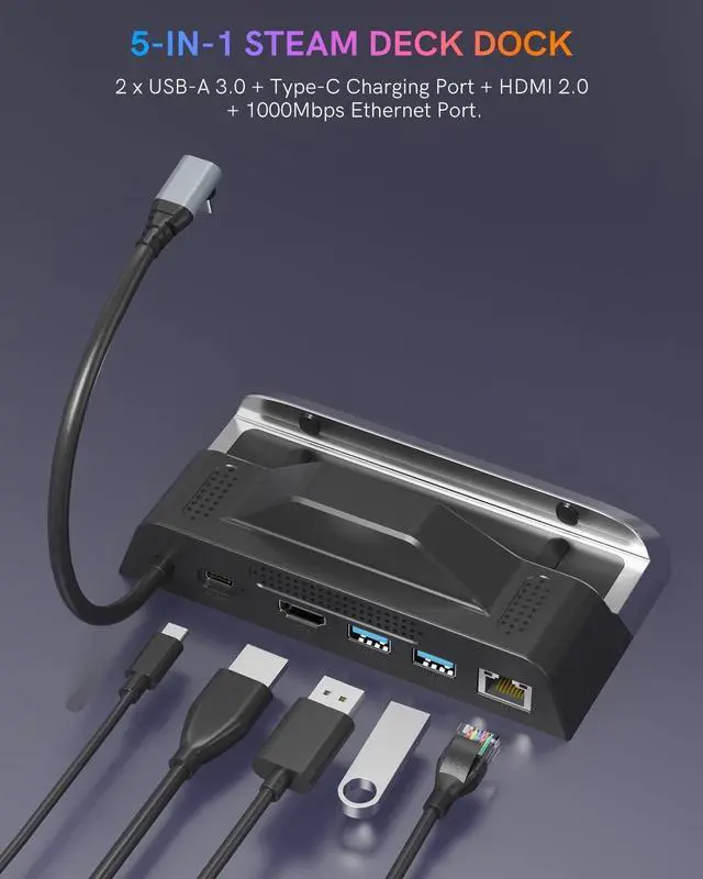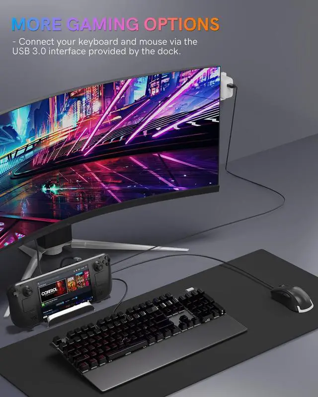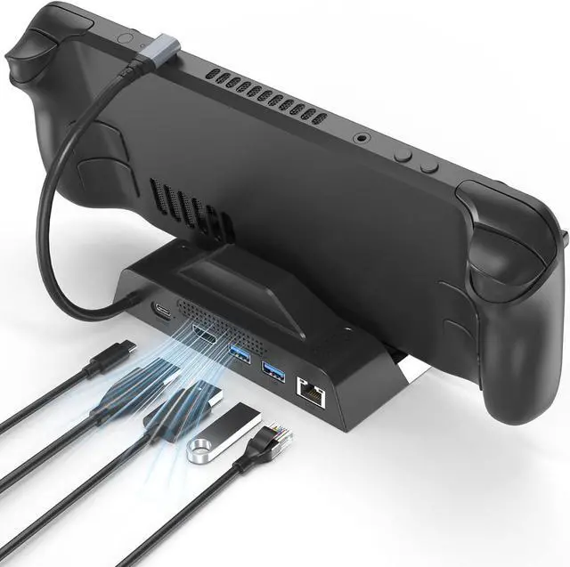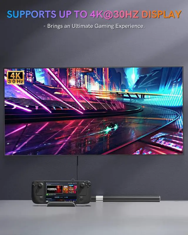TV DOCKING STAND: Designed specifically for Steam Deck, this docking stand features a 4K HDMI output, a USB Type-C PD fast charging port, and 3 USB 3.0 data ports. Charge your device while playing games on your TV and easily connect keyboards and mice for desktop mode. Enjoy an enhanced gaming and desktop experience with the 4K@ HDMI output, and keep your desktop tidy and organized with the hub and stand functions combined in one device. This docking stand is compatible with not only Steam Deck but also Nintendo Switch, tablets, smartphones, and more.