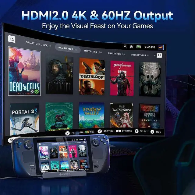 Steam Deck: Equipped with an HDMI 4K@60Hz output, a Gigabit Ethernet input, 3 USB-A 3.0 ports and a USB-C port for charging, One of the unexpected surprises is Thick-Case friendly, so you dont have to worry about scratching your stream deck body, Just need to immerse yourself in the joy brought by the game itself
