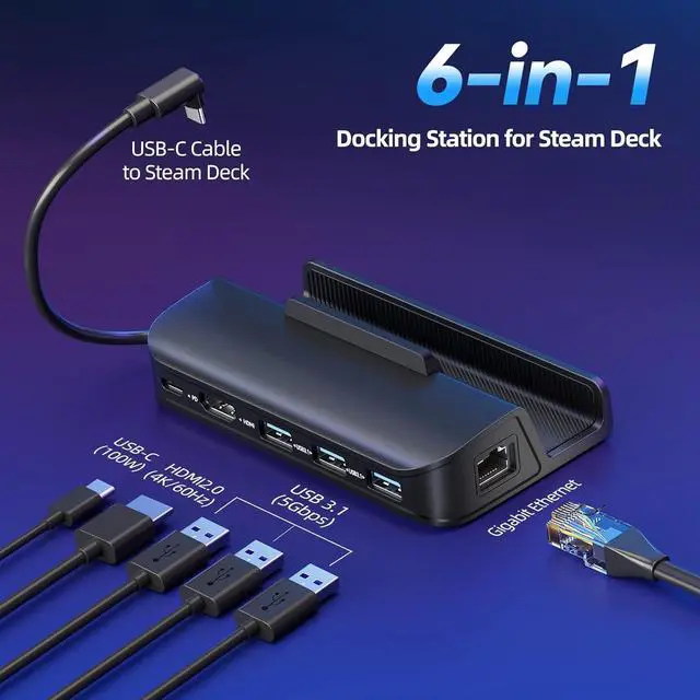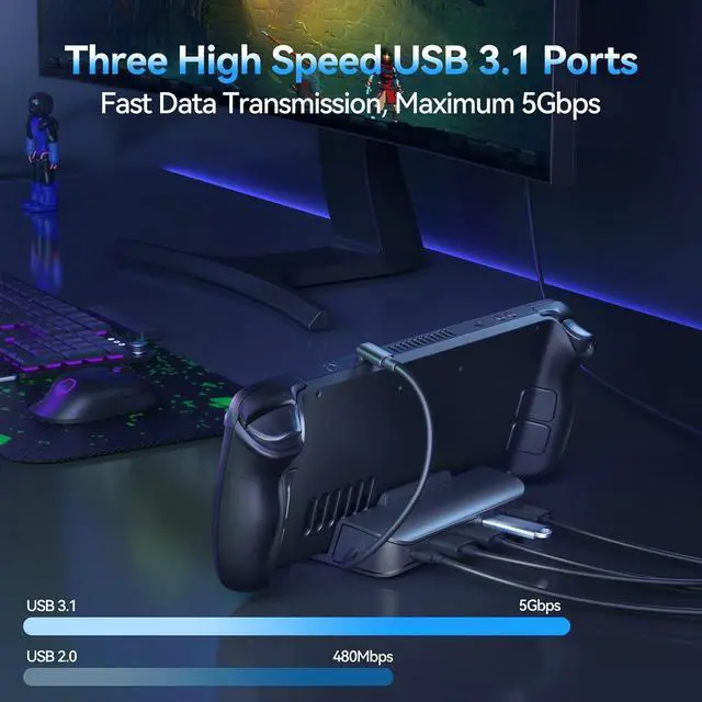 Ports High Speed Supported: The Steam Deck Dock comes with a 4K @60Hz HDMI 2.0 output. When you connect an external 4K monitor, you can enjoy the visual feast on your games. Please ensure your HDMI cable is 2.0 version. The three USB-A 3.1 ports can be expanded at the same time to meet your various needs, dock your steam deck with a monitor, keyboard & mouse, The transmission speed of them can be up to 5Gbps.