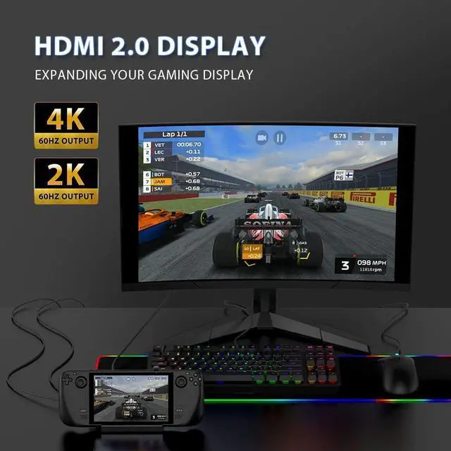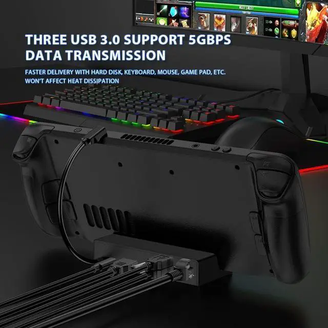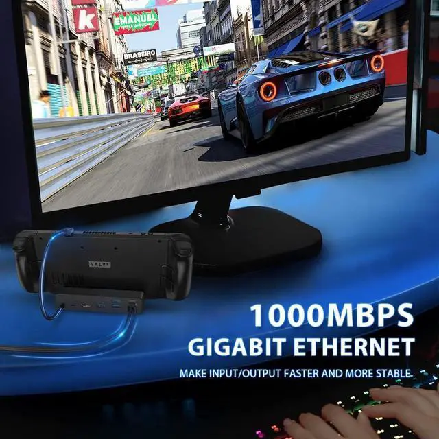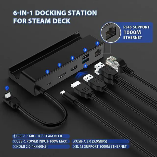 Funalot Steam Deck Dock, 6-in-1 Docking Station Compatible with Valve Steam Deck, Gigabit Ethernet, Stream Deck Dock Stand with 4K@60Hz HDMI 2.0, 3 USB 3.0 Data Ports, USB-C PD Charging Port