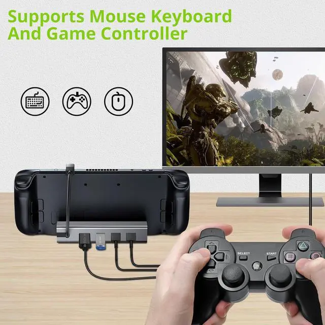 Plug and Play&Compact and Portable No complicated setup required. Simply connect your Steam Deck to the docking station and start gaming instantly. It also features built-in protection measures to safeguard your device from overcurrent, overheating, and overcharging.