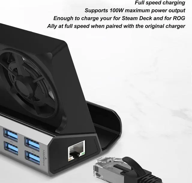 Full Speed Charging: The for Steam Deck Dock supports 100W maximum power output, which is enough to charge your for Steam Deck and for ROG Ally at full speed when paired with the original charger.