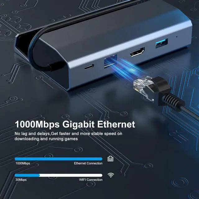 Play Smoother & FasterThe RJ45 Ethernet port with up to 1000Mbps makes it easy to connect to a high performance network. You will get a much faster and more stable network environment than WiFi connection and enjoy super-fast and high-quality downloads on your Steam Deck.