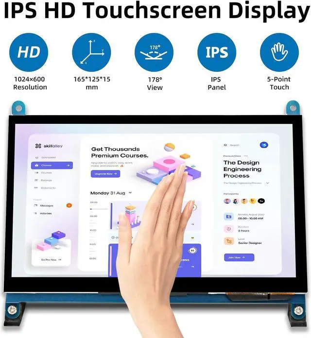 5-Point TouchThe capacitive touchscreen supports up to 5-point touch. It supports separate backlight control, allowing you to turn off the backlight to save power. No driver installation is required; simply connect the Raspberry Pi and the monitor via the Micro USB and HDMI ports to use it immediately.