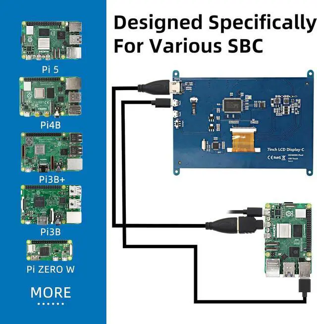 Wide CompatibilityThe mini monitor is fully compatible with Raspberry Pi 5, 4, 3B+, 3B, 2B+, as well as BB Black, Banana Pi, Jetson Nano, and other mainstream mini computers. It can also be used as a universal small HDMI compatible screen for connecting computers, TV boxes, game consoles, or as a computer temperature monitor.