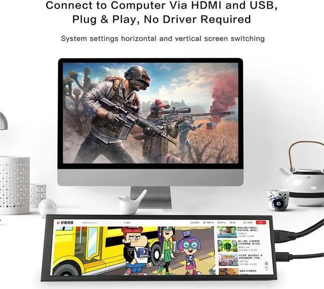 easy to use: This is a drive free display monitor. 1x mini HDMI and 1x micro USB ports. HDMI supports data and signal transmission, one USB for power supply.