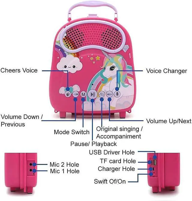 Music Toy]: Karaoke Music Toy support voice changer, applause, accompaniment and acoustic singers, easy to use button functions, children's gatherings will become more interesting.