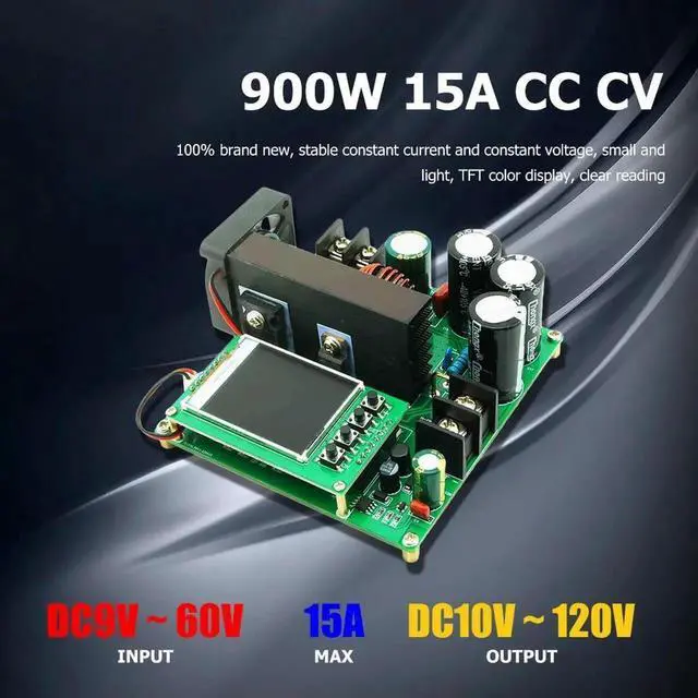 900W 15A Boost Module Board TFT Display DC-DC Boost Converter Module 8-60V To 10-120V Constant Current Voltage CC CV