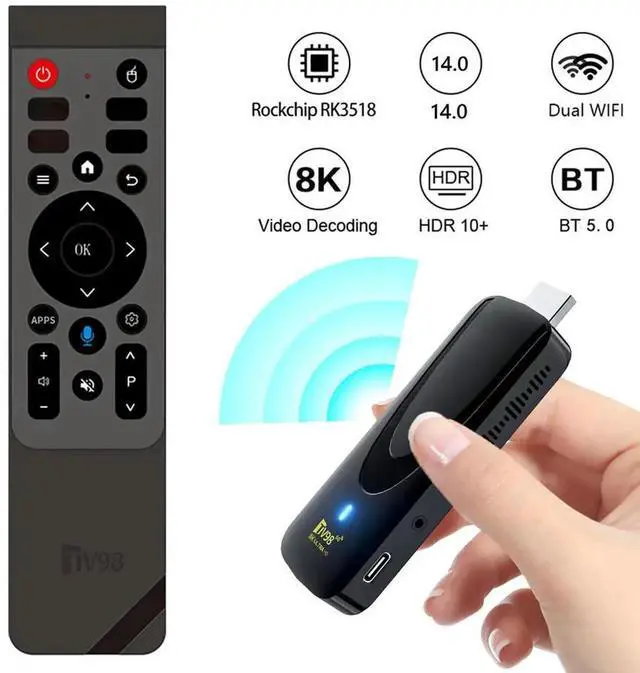 TV98 ATV X9 TV Stick Android 14 TV Box Quad Core 2.4G 5GB T 5.0 Voice Remote TV Box Streaming TV Stick 4K 8K