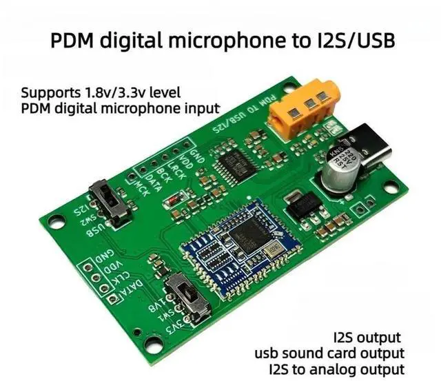 PDM MEMS Digital MIC Microphone To I2S/ Analog USB Sound Card Output PCM5102A Decoding 16bit 48K