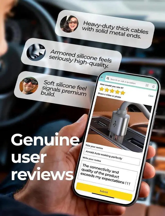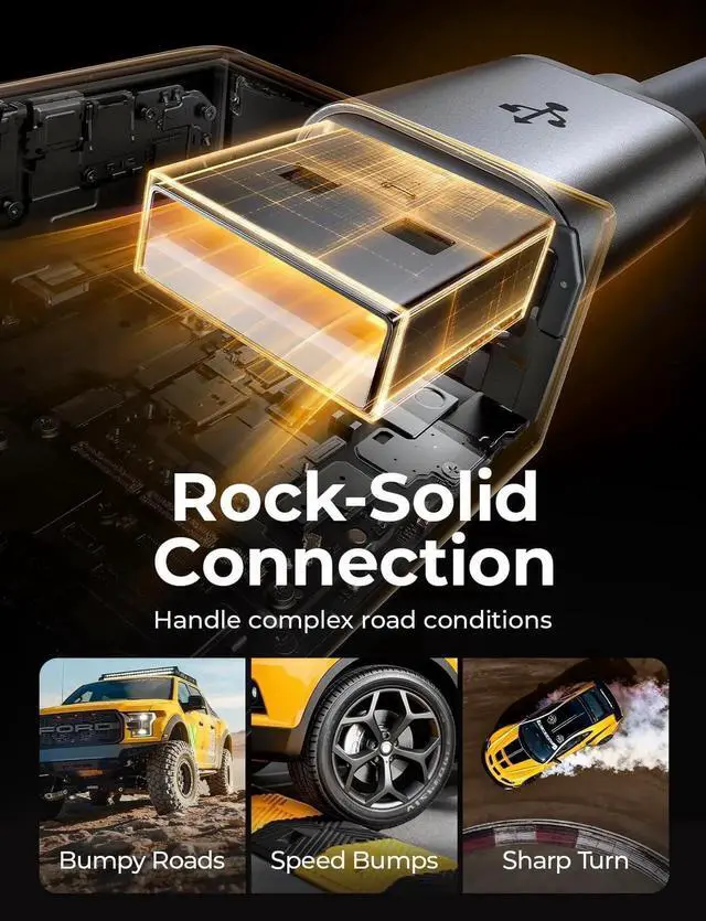 Optimized for CarPlay & Android AutoLISEN coiled cable features an upgraded internal structure with double reinforcement. UV adhesive sealing and molded unibody construction prevent disconnections even on bumpy roads. Supports 480Mbps data transfer speed for media and picture files. Power your phone and enjoy seamless navigation & music via rock-solid CarPlay & Android Auto, mile after mile
