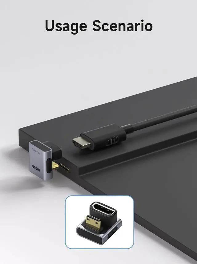 Mini HDMI to Mini HDMI Adapter 2 Pack, 8K@60Hz 4K@240Hz U-Shaped 180 Degree Male to Female Extension Connector Conventer for Portable Monitor (Mini HDMI U-Shaped Front)