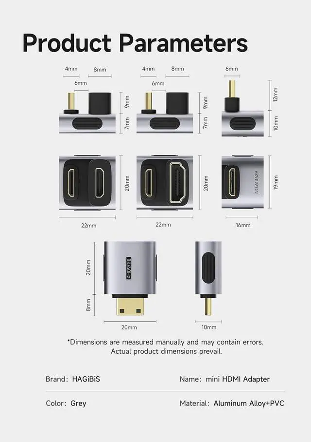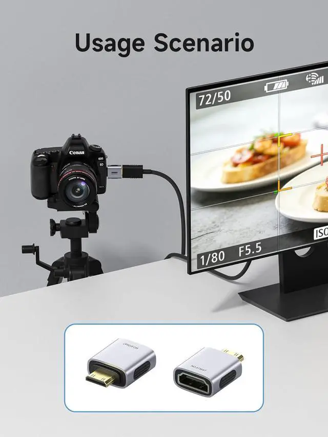 Mini HDMI to HDMI Adapter 2 Pack, 8K@60Hz 4K@240Hz Mini HDMI Male to HDMI Female Extension Connector Conventer for Portable Monitor (Straight)