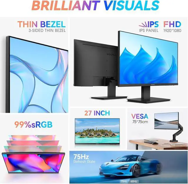 [Visual Enjoyment & Panoramic Viewing] This 27 inch monitor with IPS technology & three-sided ultra-thin bezel design gives you brilliant visuals & unforgettable quality, Besides, the 178° wide viewing angle of this monitor 27 inch allows you to enjoy a clear, sharp, & delicate images at any angle.