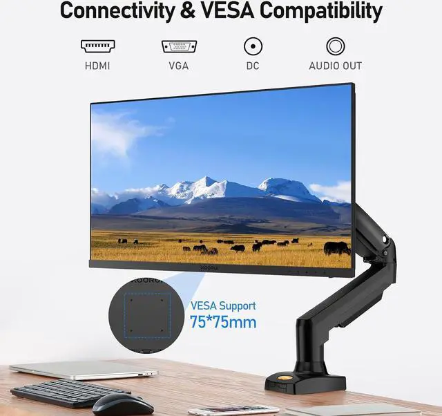 Productivity & Multiple Connectivity - For busy office workers, the pc monitor provide video interfaces via HDMI and VGA ports. This 27'' desktop monitor also have Audio out Ports. No more need for docking for Audio device connections. The 27 inch computer monitor stand can be quickly installed and dismantled, and supports 75*75mm VESA stand, which provides great convenience for you to move and place the monitor. Tilt 5 degrees forward and 20 degrees back to give you the best viewing angle.