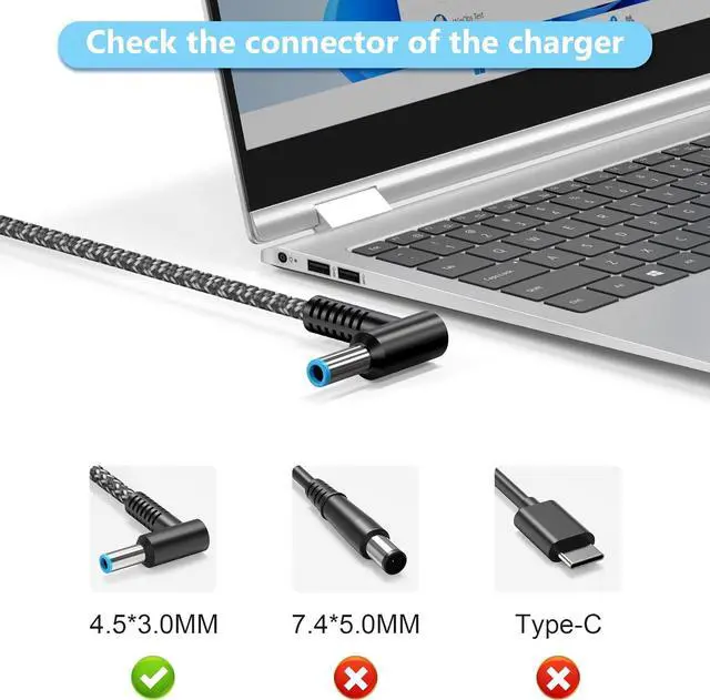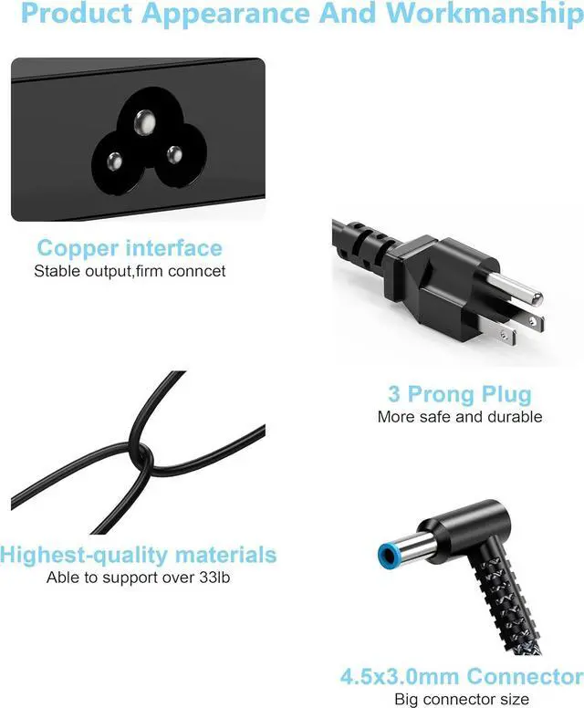 Input: 100 ~ 240V 50 ~ 60hz, connector: 4.5 mm × 3.0 mm blue tip, please check the computer model to avoid mistake.