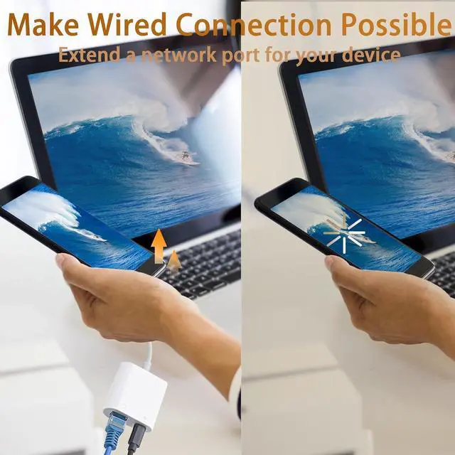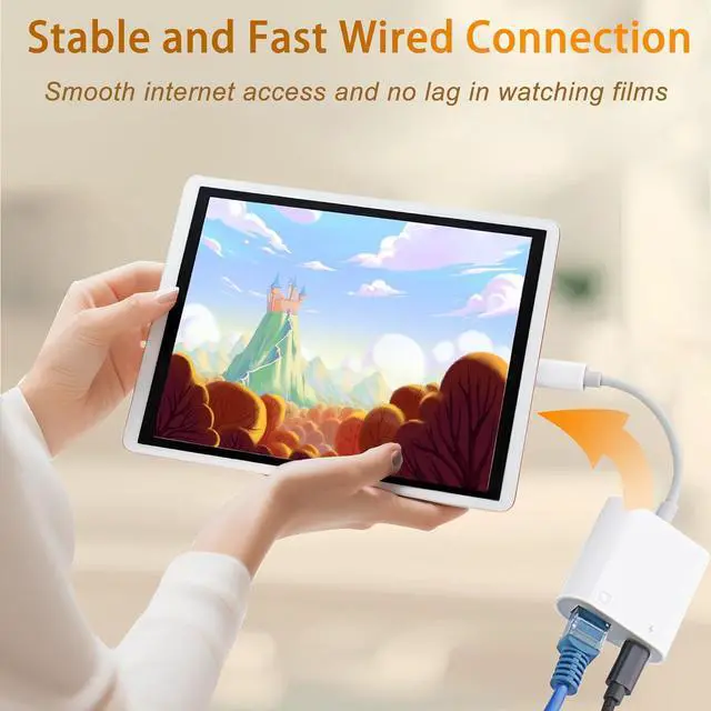 Fast and Stable Ethernet NetworkingThe ipad ethernet adapter supports super fast Internet transmission. The Ethernet port can be used alone, or both the Ethernet port and the charging port can be used at the same time! No more buffering and disconnection like WiFi or LTE.