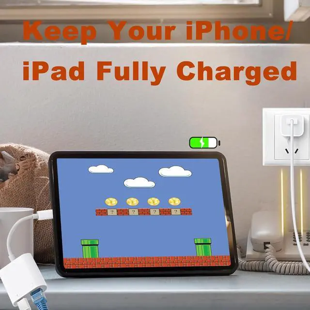 2-in-1 ipad Ethernet AdapterThis lightning to ethernet adapter for iphone supports both internet access and charging. You can connect the cable to your iPhone/iPad for wired network access, providing ultra-high speed Internet access, allowing you to watch videos, play games or live streaming connections more smoothly for a smoother Internet experience.
