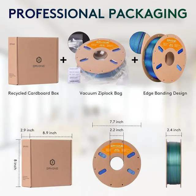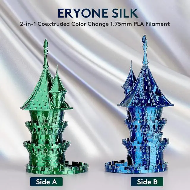 1. Silk Dichromatic FilamentERYONE dual-color silk filament is made from two individual colors, extruded into one filament strand. You can change the visible color by rotating the color-blending filament to different orientations.