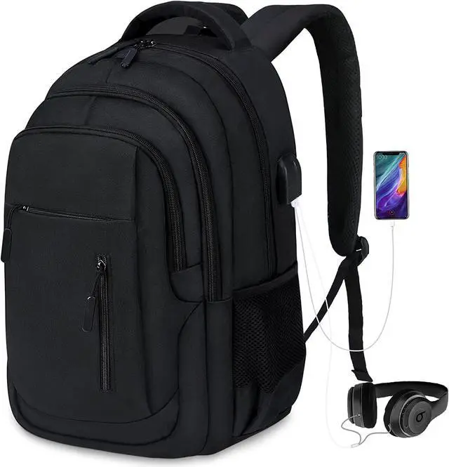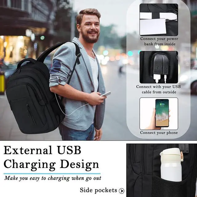 CONVENIENT USB&HEADSET PORT DESIGN Laptop backpack is designed in external USB port with built-in charging cable, great convenience for charging your electronic devices via connecting your own power bank. And the headphone interface frees your hands when enjoying audios, music, etc.