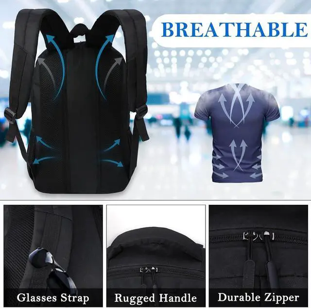 COMFORTABLE & BREATHABLEAdjustable shoulder straps and back side features S-shaped design, fits more closely to the shoulders and back and not easy to fall off. This backpack comes with comfortable and breathable sponge mesh design, and lined with a comfortable airflow foam-pad back with soft, multi-panel breathable mesh padding with good heat dissipation and not get clammy, providing great comfort for your back. A foam-padded top handle makes it a carry-on.