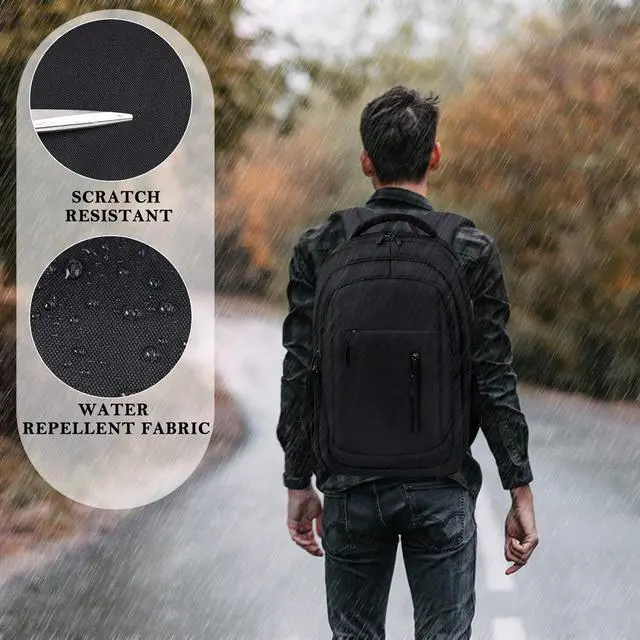 DURABILITY & WATERPROOFFeaturing high density & waterproof outer oxford material, and durable inner polyester fabrics, this mens backpack is waterproof, scratch-resistant, and tear-resistant. Smooth zipper and top sturdy handle for long-lasting usage. Plus, Special reinforcement at all the stress points of the laptop backpack. To make sure that it won't break even when you carry heavily.