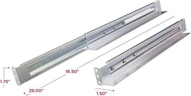 4 post universal rack mount rail kit Supports 1u, 2u, and 3u equipment Adjustable from 18.5" To 29" Weight capacity of 231 lbs. Enclosure Construction: Steel Attachment hardware included