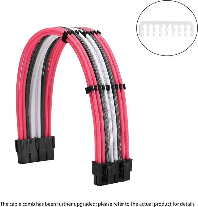 All cables are manufactured with thick 18AWG wires and come in a high-density flexible protective sleeve allowing for a stiff yet adaptable temperament. Comes with several cable combs to cleanly route and organize.