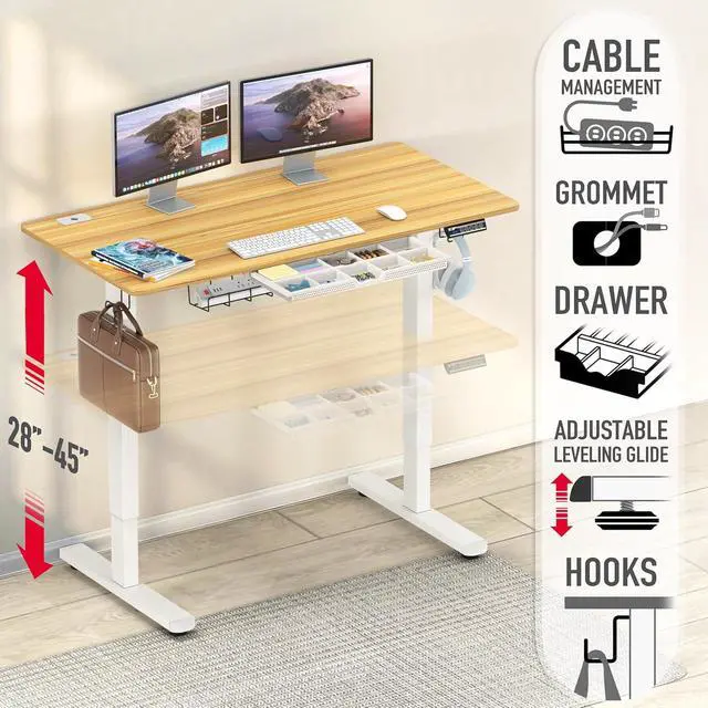 Hooks and Drawer: Includes a built-in cable tray to neatly organize cords and reduce desktop clutter, maintaining a clean and professional workspace.