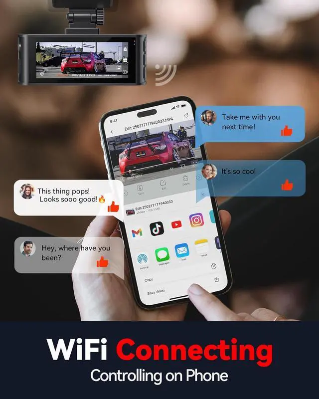 With Wifi&GPS, Drive in The Know-These two features always keep you updated. After wifi connecting, just use your smartphone to do the trick: easily view, download or share videos. And with the GPS function, get your driving route, speed, location and other metrics very well in hand