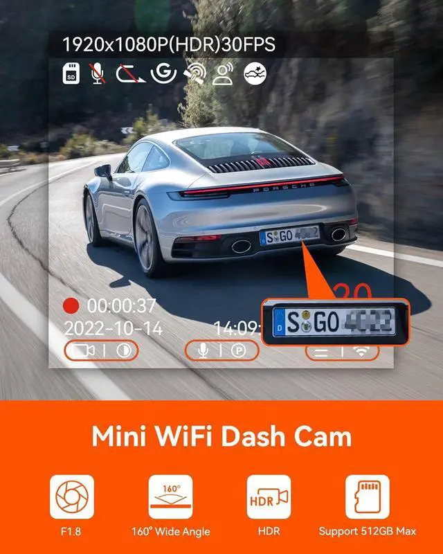 [ Smart Voice Control & Easy to Install and Use ] This smart dash camera can be easily controlled by multiple languages voice commands (English, Russian, Chinese, French and Japanese), which allows you to save video, take photo, start video, turn on/off audio, turn on /off WiFi, turn on/off screen by speaking simple voice commands. No need to remove your hands from the driving wheel, free you hands and improve your driving safety. Magnetic mount allows you to detach the camera from the mount easily without messing cables.