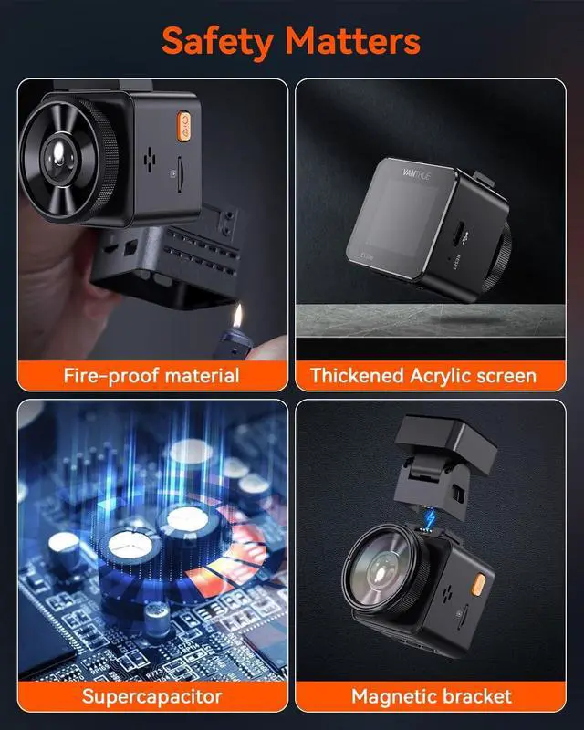 [ Built in WiFi & GPS ] With built in high-frequency WiFi module and dual system GPS module. This WiFi dash cam allows you to configure dashcams settings, preview, playback, download, edit recorded videos, share online and track GPS data including live speed in KM/H or MP/H, location and driving route on your smartphone via free Vantrue APP. Free Vantrue GPS player also supports zooming in footage to capture clearer license plate details. No monthly subscriptions or fees required.