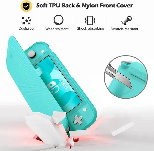 Made from soft TPU back cover and high quality nylon material front cover, easy to put on and take off, also protects your Switch Lite from dust, bumps and drops; The microfiber interior keeps your Switch screen free of scratches