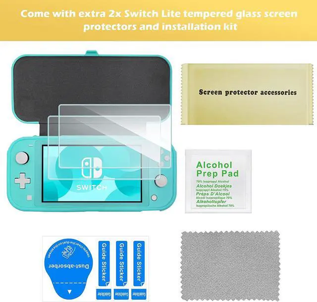 Come with extra 2x Switch Lite tempered glass screen protectors and installation kit; Install easily and bubble free; High definition with 99.9 % transparency, effectively protects the entire screen
