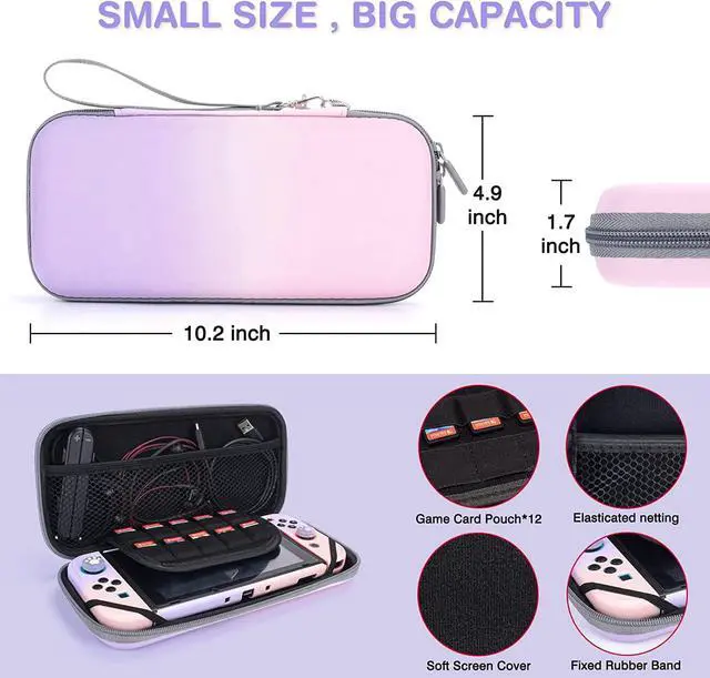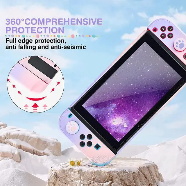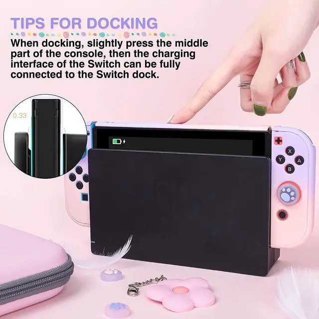PINK AND PURPLE PROTECTIVE CASE -- Dreamy colour; the hard cover will provide your Switch all-round protection, protect your Switch from daily scratches, bumps and other impacts. And please dont worry, we have tested many times, the cute shell is dockable.