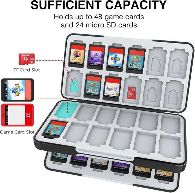SUFFICIENT CAPACITY: This compact storage case holds up to 48 game cards and 24 micro SD cards for nintendo switch 2 game card