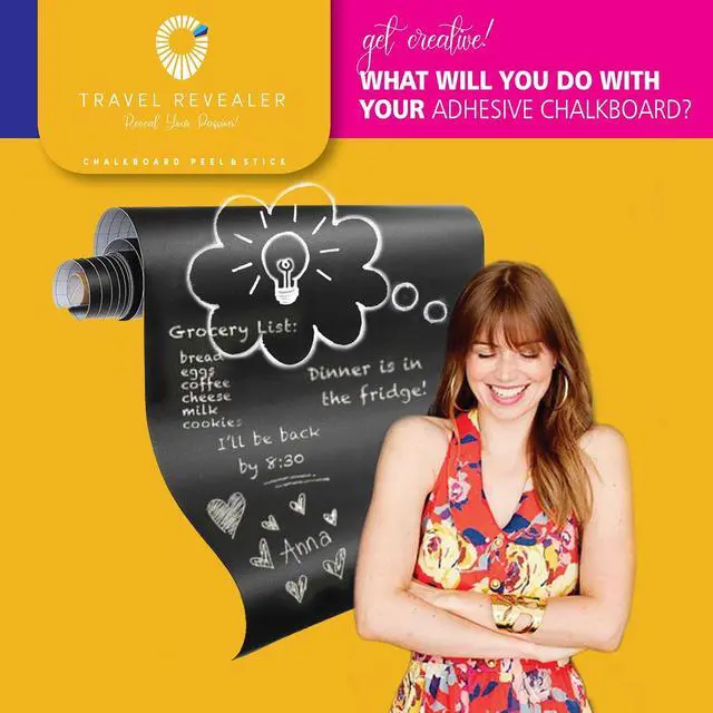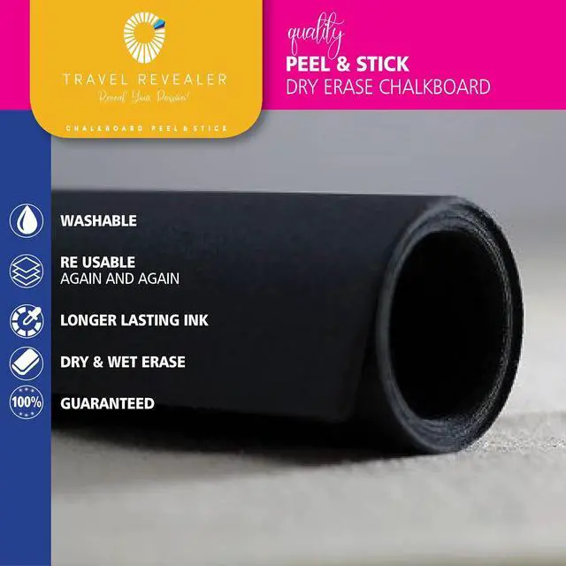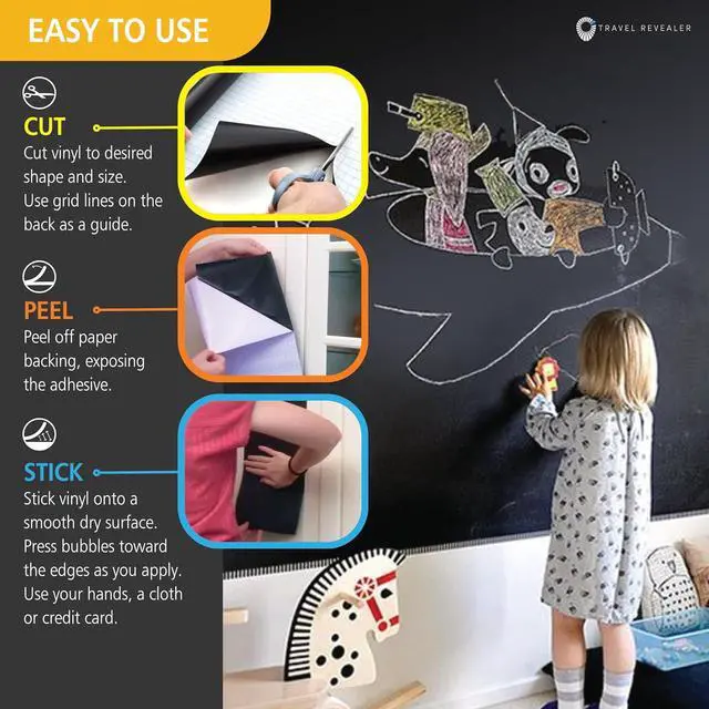 Large adhesive chalkboard contact paper - Turn any flat surface into a blackboard. Customize to any size or shape. Simply cut, peel and stick. Our black contact paper is premium quality and designed to be removable chalkboard bulletin board paper that is built to last