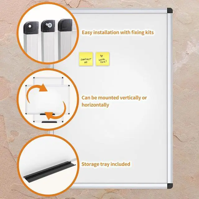Versatile InstallationFlexible mounting allows you to install your whiteboard either horizontally or vertically. Easily customize the board's orientation to fit your space and needs. The classic design will match any decoration, making it a perfect addition to your space.