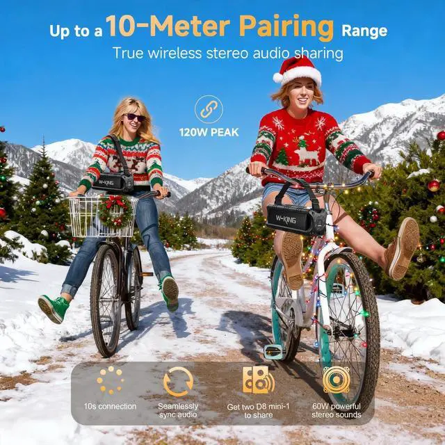 WATERPROOF IPX6 & POWERFUL STEREO SOUND: W-KING waterproof outdoor Bluetooth speaker is IPX6 certified to resist gentle water spray & splash but cannot be partially or fully submerged. Its perfect for splash-proof, rainproof, dust-proof, sand-proof, etc. Connect two W-KING D8 MINI-1 portable speakers wireless bluetooth at the same time, you can get a 30W superl surround sound effects, and enjoy a better music feast!
