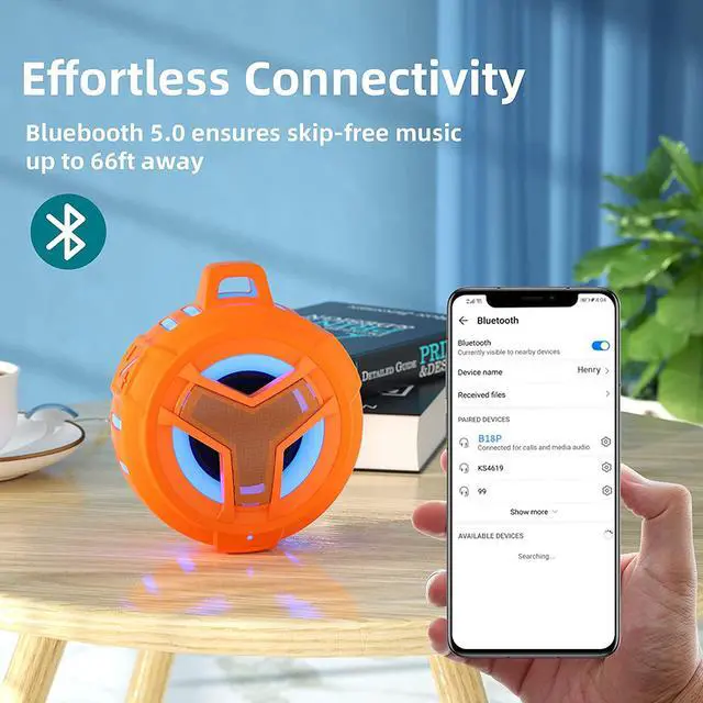 SATABLE BLUETOOTH 5.0 CONNECTION Wireless shower speaker can connect the device from 66 unobstructed feet away. Advanced antenna design with Bluetooth 5.0 provides effortless, greater wireless range and more stable Bluetooth connection for all Bluetooth devices. Such as all iOS Android devices, Smartphone, PC and even echo Series. EBODA shower Bluetooth speaker promise to provide you with a smooth and consistent music experience.