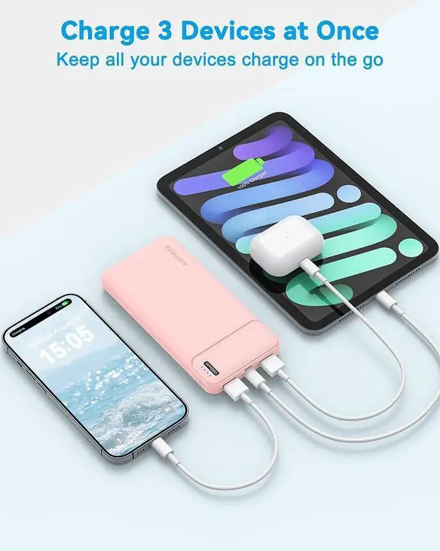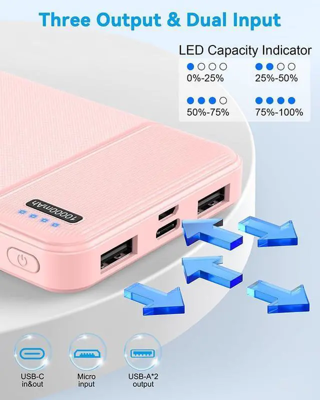 [Charge THREE Devices Simultaneously] Our battery pack power banks come with one USB-C output and two USB outputs, boasting 2.4A outputs that are faster than 2.0 outputs. you can charge up to three devices simultaneously. The triple-port design allows you to share a portable power pack with your family and friends