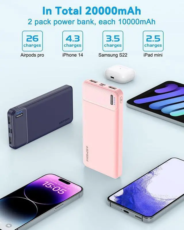 [Safe Travels] The outer shell of the ASPERX battery pack power bank is made with safe and NON-Flammable materials. The high-quality Li-ion battery included in the USB battery bank helps charge it safely and prevents over-voltage, over-charging, over-current, and short circuits, among other things. It won't become too hot or put a lot of strain on your phone's battery. These phone charger battery pack portables are also airline-approved for safe travels